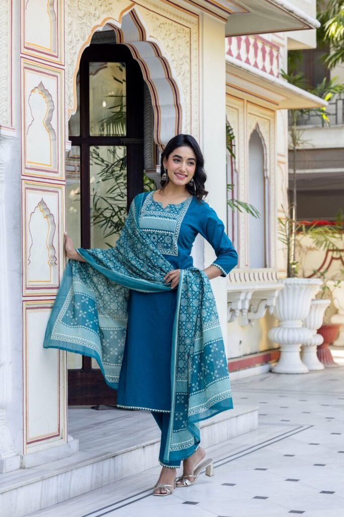 Elevate your wardrobe with the Cotton Printed 3 Pc Suit in Blue – a perfect blend of style and comfort. Designed for individuals who value elegance, this suit is crafted from premium-quality cotton to ensure all-day comfort while making a chic statement. The breathable fabric keeps you at ease in any season, making it an excellent choice for daily wear, casual meetups, or semi-formal occasions.