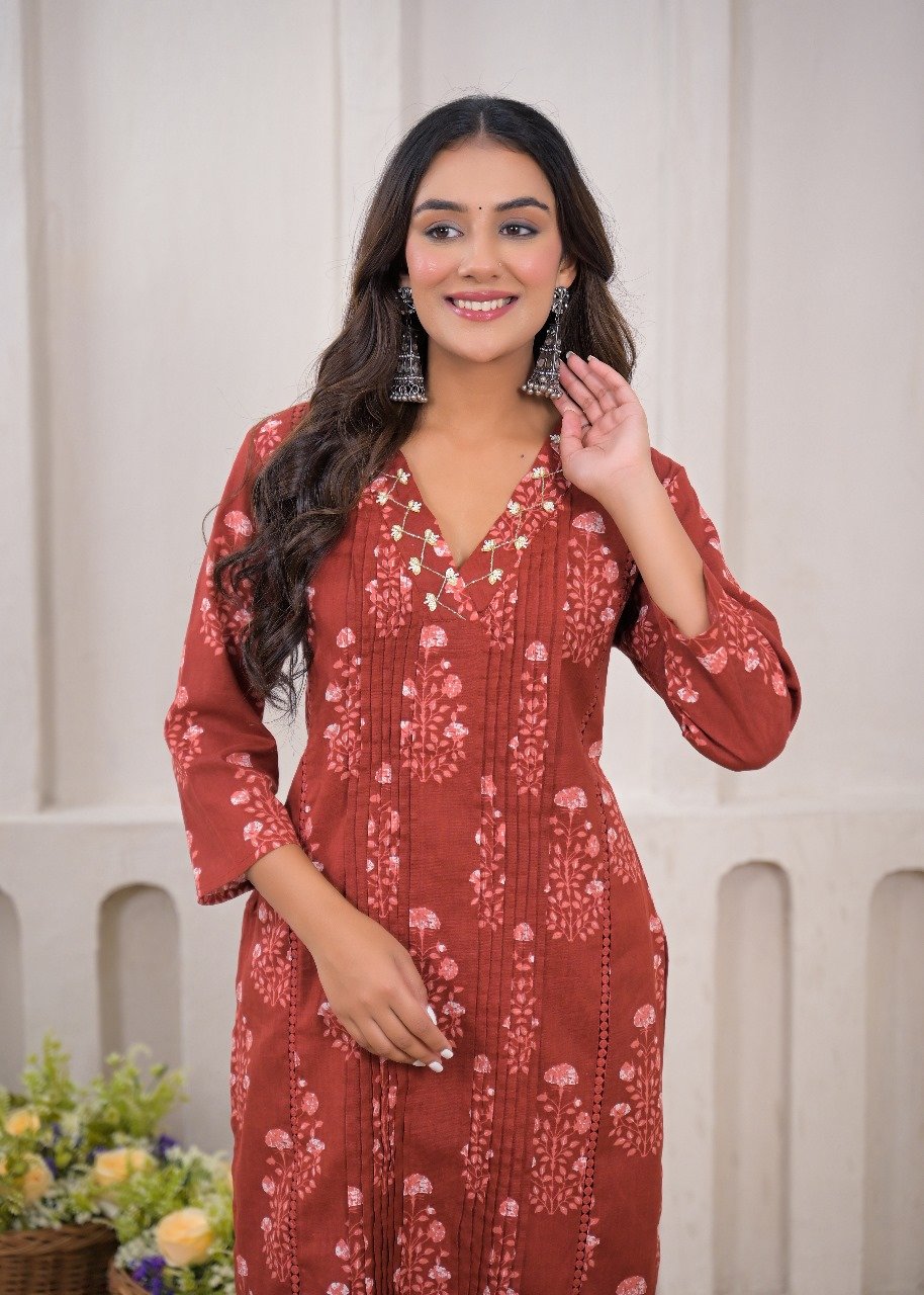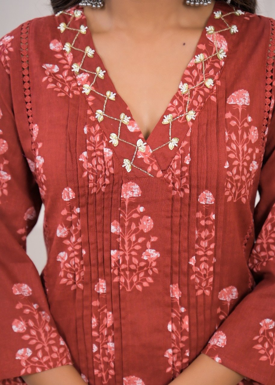 Maroon Printed 2pc Cotton Dress set